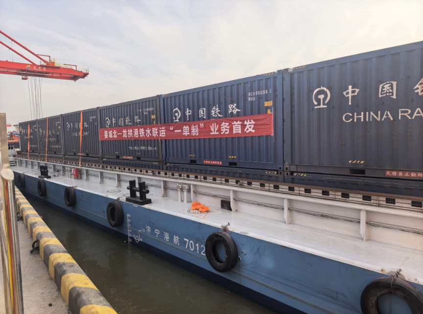 今年5月,公司通過(guò)深入考察交流、推理、洽談和業(yè)務(wù)銜接,與濟(jì)南鐵路物流中心、濟(jì)寧龍拱港有限公司合作首推新能源電車-鐵路-船運(yùn)多式聯(lián)運(yùn)一單制運(yùn)輸模式試運(yùn)行,并于12月10日鐵路集裝箱到達(dá)龍拱港下水裝船運(yùn)行。